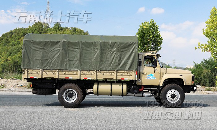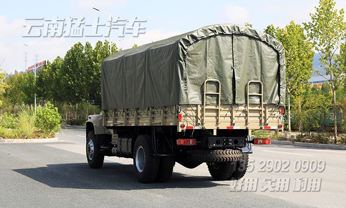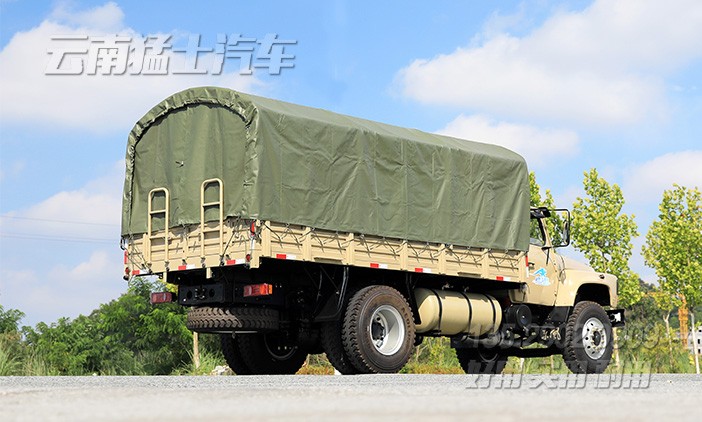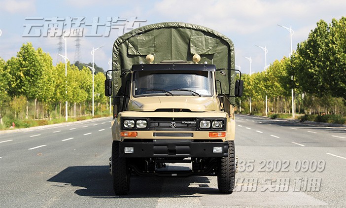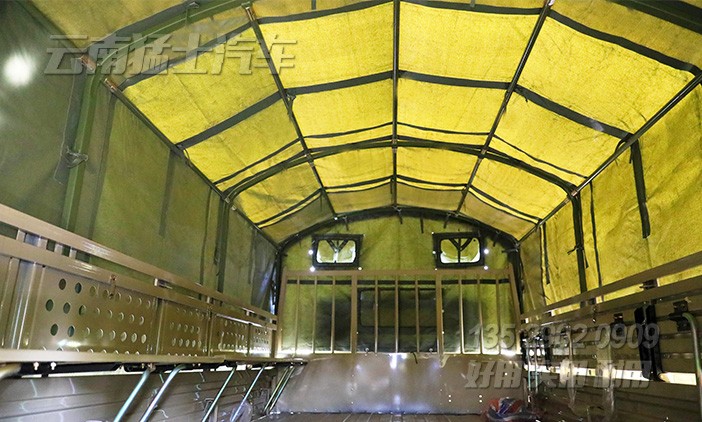 東風(fēng)4*2尖頭載貨汽車采用康明斯190馬力發(fā)動(dòng)機(jī),該車貨箱內(nèi)部帶有折疊座椅,隨車裝有一套篷布篷桿,可以載人拉貨。