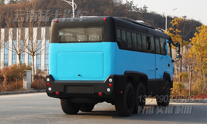 東風六驅25座越野型客車采用康明斯210馬力發動機,專用的越野輪胎,涉水越障都經過嚴格的檢測,是一款符合越野標準的專用型客車。
